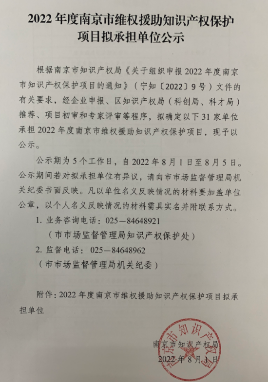 2022年度亚洲色吧 维权援助知识产权保护项目拟承担单位公示