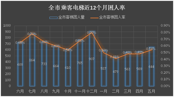 注:全市客梯困人率=每月客梯困人次数÷当月全市在用客梯总数×100%